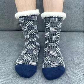 Herren 1 Paar Socken Socken mit Sherpa-Futter Freizeitsocken Wintersocken Blau Braun Farbe Geometrisch Karomuster Urlaub Täglich Basic Warm Winter Mode Lässig
