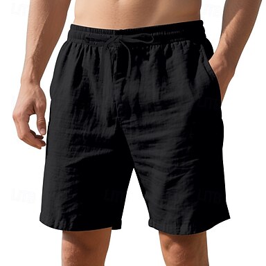 Herren Shorts Leinenshorts Sommershorts Strandshorts Tasche Kordelzug Elastischer Bund Einfach Komfort Atmungsaktiv Kurz Urlaub Ferien Strand Hawaiianisch Boho Schwarz Weiß