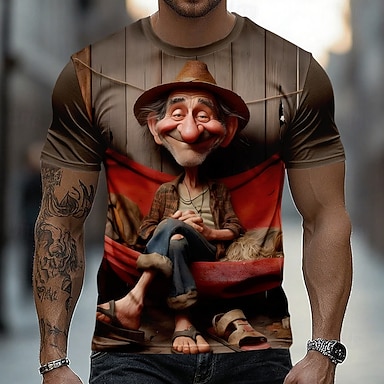 Herren 3D Alter Mann T Shirt Kurzarm T-Shirt 3D-Druck Rundhalsausschnitt Hemd Übertrieben Designer Täglich Club Party Braun Sommer Frühling Ganzjahres Bekleidung S M L XL XXL XXXL