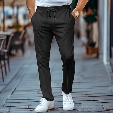 Herren Jogginghose Hose Faltenhose Kordelzug Elastischer Bund Einfach Komfort Atmungsaktiv Volle Länge Lässig Täglich Ferien Sport Mode Schwarz Weiß Mikroelastisch