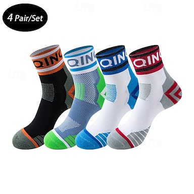 Herren 4 Paar Mehrfachpackungen Socken Laufsocken Freizeitsocken Schwarz Rote Farbe Farbblock Buchstaben Urlaub Sport & Outdoor Täglich Basic Mittel Frühling Herbst Mode Lässig