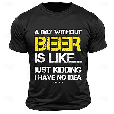 Herren Buchstabe Lustig Bier T Shirt T-Shirt Baumwolle Kurzarm Grafik Hemd Schwarz Bequemes T-Shirt Straße Sport im Freien Modedesigner-Kleidung