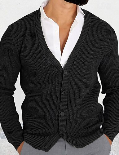 Herren Strickjacke Kleid Pullover Strickpullover Gerippt Stricken Standard Knopf hoch Seitentaschen Feste Farbe Kargen Modisch Klassisch Freizeitskleidung Verabredung Bekleidung Herbst Winter