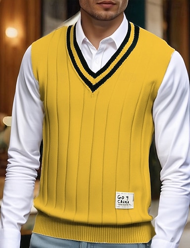 Herren Pullunder Kleid Pullover Wollpullover Gerippt Stricken Strick Button-Down Patchwork V Ausschnitt Moderne zeitgenössische Britisch Freizeitskleidung Ausgehen Bekleidung Ärmellos Frühling