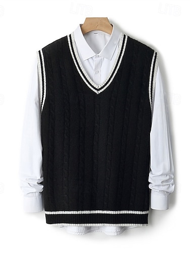 Herren Pullover Wollpullover Strickjacke Gerippt Stricken Normale Oberteile Gestrickt Button-Down Einfach V Ausschnitt Mode Streetwear Lässig Alltagskleidung Bekleidung Winter Herbst Schwarz Weiß S M