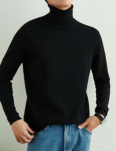 Herren Pullover Gerippt Stricken Standard Strick Schmaler Schnitt Glatt Rollkragen Moderne zeitgenössische Arbeit Freizeitskleidung Bekleidung Winter Frühling & Herbst Schwarz S M L