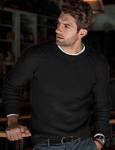 Herren Pullover Gerippt Stricken Normale Oberteile Strick Schmaler Schnitt Glatt Rundhalsausschnitt Moderne zeitgenössische Arbeit Freizeitskleidung Bekleidung Winter Schwarz Blau M L XL