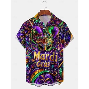 Karnival Herren Maske Lässiges Hemd Knopfhemd Kurzarm Lustig Geschenk Normal Casual Sommer Frühling Umlegekragen Knopf hoch Purpur