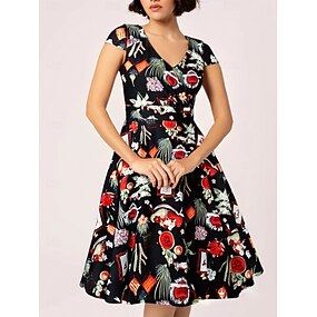 1950er Cocktailkleid Alltagskleidung Kleid Partykostüm A-Linie Kleid Blumen Kostüm Damen Weihnachten Halloween Karneval Veranstaltung / Fest Cocktailparty Abschlussball Erwachsene Kleid
