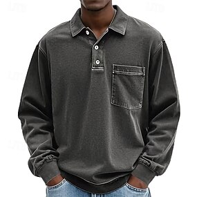 Herren Vintage-Shirt Baumwoll-Poloshirt Geschäft Lässig Revers Klassisch Langarm Vintage Mode Einfarbig Einfach Vintage-Stil Gewaschen Herbst Winter Ganzjahres Lässiger Schnitt Schwarz Braun Rosa