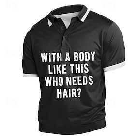 Herren Lustiges Glatzkopf Humor Kurzarm Grafik Polohemd - 'Mit einem Körper wie diesem wer braucht da Haare?'