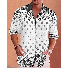 Herren Hemd Leinenhemd Sommerhemd Strandbekleidung Knopfhemd Blumen Urlaub Kreuzfahrt Schwarz Weiß Rosa Blau Langarm Revers Frühling & Herbst Bekleidung Spleißen