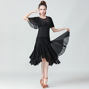 Lateinamerikanischer Tanz Röcke Unifarbe Spleißen Pailletten Damen Leistung Training Kurzarm Hoch Polyester