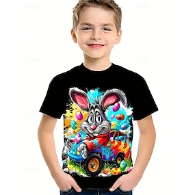 Ostern Jungen 3D Kaninchen T-Shirt Kurzarm Sommer Frühling Mode Basic Kinder 4-12 Jahre Rundhalsausschnitt Outdoor Lässig Täglich Normale Passform