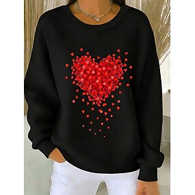 Damen Pullover Druck Herz Grafik Warm Klassisch Lässig Langarm Rundhalsausschnitt Normale Oberteile Lässig Heim Straße Blau Schwarz Weiß Rosa Beige Frühling Herbst Winter