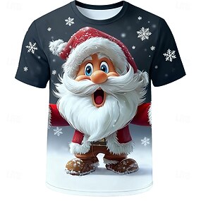 Weihnachten Herren Weihnachtsmann T Shirt Kurzarm T-Shirt 3D-Druck Rundhalsausschnitt Hemd Täglich Designer Künstlerisch Urlaub Party Straße Blau Schwarz Hellgrau Ganzjahres Bekleidung S M L XL XXL