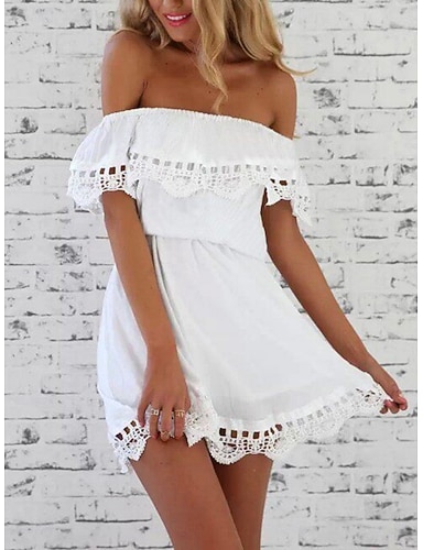 Damen Minikleid Spitzenkleid Weißes Kleid Elegant Mode Romantisch Strand Urlaub Ausgehen Normale Passform Einfach Kurzarm Schulterfrei Schwarz Weiß Sommer Frühling