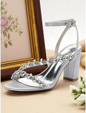 Weiße Damen-Sandalen mit Blockabsatz – elegante Brautschuhe mit Kristallriemen für Gartenhochzeiten