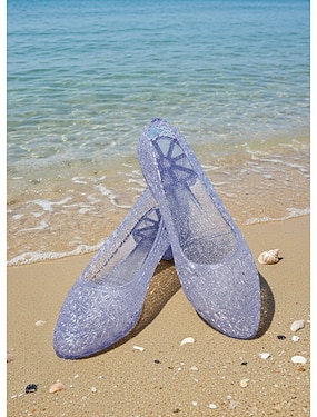 Glitzernde gelbe Jelly-Pumps für Damen – atmungsaktive, durchbrochene, gitterförmige Pumps mit niedrigem Blockabsatz und Glitzer für Strandurlaube und Sommerhochzeiten &Badeortkleidung
