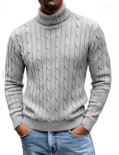 Herren Pullover Strickpullover Gerippt Stricken Normale Oberteile Gestrickt Einfarbig Rollkragen Mode Streetwear Lässig Alltagskleidung Bekleidung Herbst Winter Kamel Wein S M L
