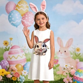 Ostern Mädchen' 3D Grafik Kaninchen Kleid Ärmellos 3D-Druck Sommer Frühling Täglich Urlaub Party Lässig Prinzessin Schön Kinder 4-12 Jahre Freizeitkleid Shiftkleid Knielang Normale Passform