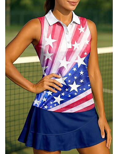 Amerikas 250. Jahrestag Tag der Unabhängigkeit Damen Geometrisch Sterne Nationalflagge Sporthemd Golf-Poloshirt Tank Top Tennis-T-Shirt Ärmellos Knöpfe UPF50+ UV Schutz Atmungsaktiv Tennis Badminton