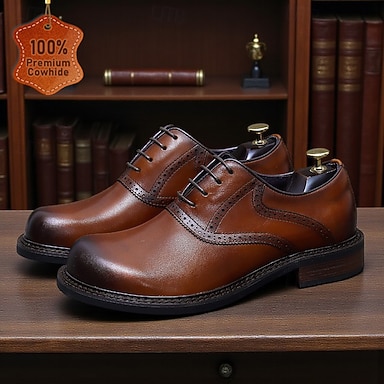 Oxford-Abendschuhe für Herren aus echtem Leder – erste Schicht Rindsleder im klassischen Brogue-Design, formelle Business-Schuhe zum Schnüren für Büro, Hochzeiten und Berufskleidung