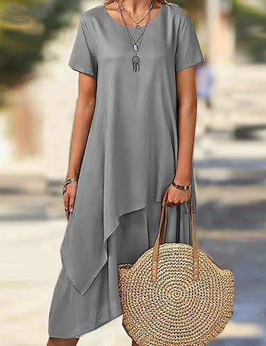 Damen Midikleid Freizeitkleid T-Shirt-Kleid Klassisch Modern Outdoor Urlaub Täglich Normale Passform Einfach Kurzarm Rundhalsausschnitt Grau Sommer