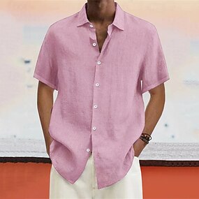 Herren Hemd leinenhemd Baumwoll-Leinenhemd Sommerhemd Freizeithemd Strandhemd Einfach Urlaub Lässig Schwarz Rosa Dunkelgrün Violett Kurzarm Revers Sommer Bekleidung