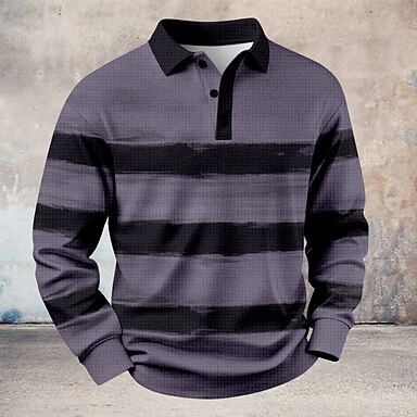 Herren Gestreift Waffel-Poloshirts Rugby-Poloshirt Langarm Polo-Shirts Hemden mit Kragen Lässig Athleisure Alltagskleidung Knöpfe Frühling Herbst Winter Blau Weiß Violett