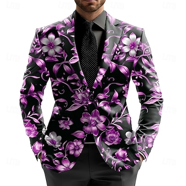 Herren Blazerjacke Formell Stilvoll Alltagstauglich Ganzjahres 100% Polyester Weberei Blumenmuster 3D-Druck Knöpfe Bequem Einreihig Blazer Gelb Violett Purpur Gold