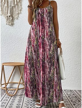 Damen Langes Kleid Maxikleid Freizeitkleid Trägerkleid Sommerkleid afrikanisch Täglich Strand Ferien Normale Passform Geometrisch Paisley-Muster Farbblock Ärmellos V Ausschnitt Wein Sommer