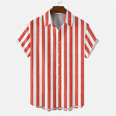 Herren Hemd Sommerhemd Freizeithemd Strandhemd Knopfhemd Rosa Wein Blau Grün Dunkel Blau Kurzarm Streifen Revers Urlaub Hawaiianisch Fronttasche Bekleidung Baumwollmischung Mode Lässig Bequem