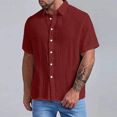 Herren Hemd Sommerhemd Freizeithemd Strandhemd Knopfhemd Wein Himmelblau Dunkelgrün Purpur Grün Kurzarm Einfarbig Revers Täglich Urlaub Bekleidung Mode Lässig Bequem