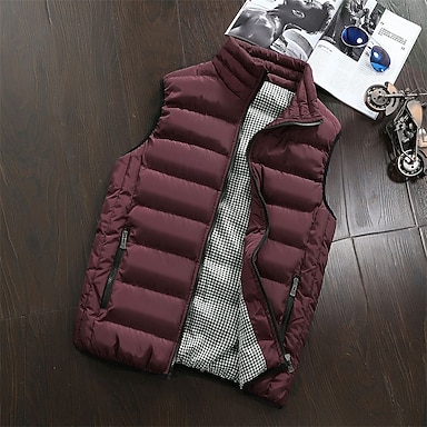 Herren Daunenweste Steppweste Weste Gilet Urlaub Täglich Date Mode Lässig Herbst Winter Tasche Polyester Entendaunen Warm Bequem Einfarbig Reisverschluss Stehkragen Normale Passform Schwarz Wein