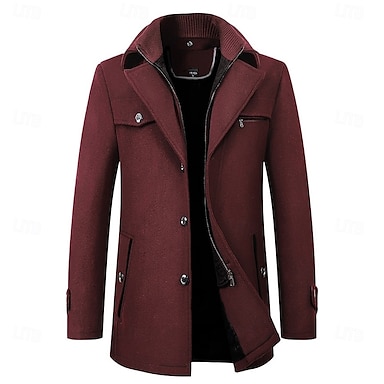 Herren Wintermantel Wollmantel Mantel Outdoor Geschäft Herbst Winter Wolle Windundurchlässig Warm Oberbekleidung Bekleidung Moderner Stil Einfarbig Ständer Einreihiger Verschluss