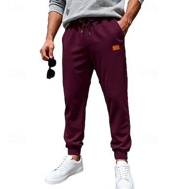 Herren Sporthose Jogginghose Cordhose Hose Gerade geschnittene Sweatpants Tasche Elastischer Bund Kordelzug Einfach Komfort Sport im Freien Täglich Mode Lässig Schwarz Wein Mikroelastisch