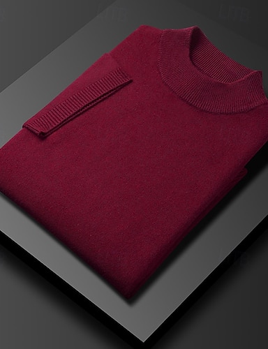 Herren Pullover Strickpullover Gerippt Stricken Normale Oberteile Gestrickt Einfach Hoher Ausschnitt Mode Basic Urlaub Alltagskleidung Bekleidung Herbst Winter Wein Schwarz S M L
