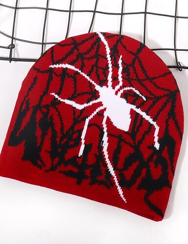 Herren Unisex Beanie Mütze Wintermützen Beanies Schädelkappe Strickmütze Hellblau Schwarz Acrylfasern Jacquard Gestrickt Gemütlich Halloween Alltagskleidung Festival Spinne Spinnennetz Warm