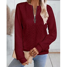 Damen Textur-Sweatshirt Sweatshirts Sweatshirts mit Reißverschluss Einfach Streetwear Lässig Bequem Langarm Hoher Ausschnitt Normale Oberteile Straße Ferien Ausgehen Halbreißverschluss