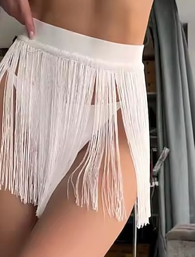 Damen Badeanzug Bikini-Unterteil Rock Bademode Fransensaum Urlaub Strandbekleidung Einfarbig Ärmellos Badeanzüge