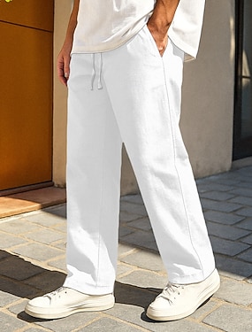 Herren Leinenhosen Hose Sommerhose Kordelzug Elastischer Bund Einfach Komfort Atmungsaktiv Lässig Täglich Ferien Mode Klassicher Stil Schwarz Weiß