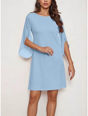 Damen Minikleid Shiftkleid Lässig Täglich Normale Passform Einfach Dreiviertelarm Rundhalsausschnitt Weiß Rosa Grün Beige Frühling Herbst