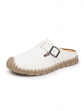 weiße Damen-Pantoletten aus Leder mit Strass-Schnalle – elegante Slipper zum Hineinschlüpfen für lässige und formelle Outfits