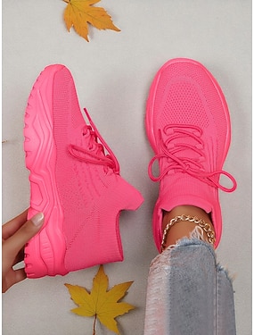 Rote Flyknit-Sneaker mit dicker Sohle für Damen – atmungsaktive Sportschuhe zum Schnüren für lässige Streetwear und Fitnesstraining