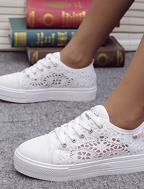 Weiße, flache Damenschuhe zum Schnüren – bequeme, leichte Sneaker für den Alltag, zum Spazierengehen, auf Reisen und für Streetstyle-Outfits
