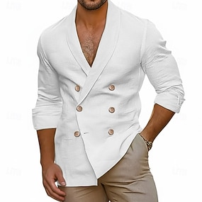 Herren Leinenblazer Sport Jacke Outdoor Lässig Lässig Frühling & Sommer POLY Baumwoll-Leinen Einfarbig Einreihig Blazer Weiß
