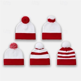 Herren Unisex Beanie Mütze Wintermützen Beanies Schädelkappe Strickmütze Weiß Acrylfasern Jacquard Gestrickt Gemütlich Weihnachten Festival Weihnachtsmann Warm