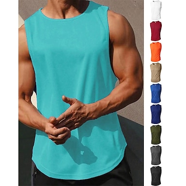 Herren Tank Top Weste Unterhemd Ärmelloses Shirt Ärmellos Rundhals Rundhalsausschnitt Sommer Einfarbig Einfach Mode Klassisch Bequem Straße Lässig Sport Schwarz Weiß Rote Top T-Shirt für Herren