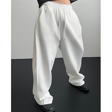 Herren Jogginghose Jogginghose mit weitem Bein Hose Jogginghose mit offenem Saum Kordelzug Elastischer Bund Einfach Atmungsaktiv Volle Länge Sport im Freien Lässig Täglich Urlaub Mode Schwarz Weiß